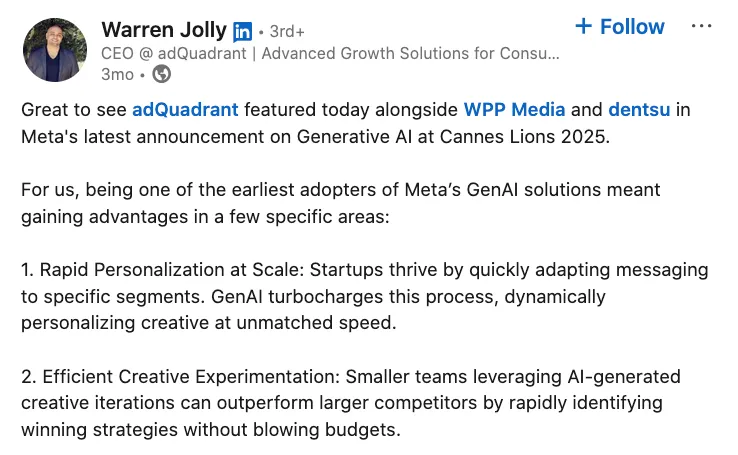 Most agencies still patch together tools and chase trends. At Adquadrant, we don’t follow. We build. We own the center of three core AI-driven shifts redefining how brands grow: